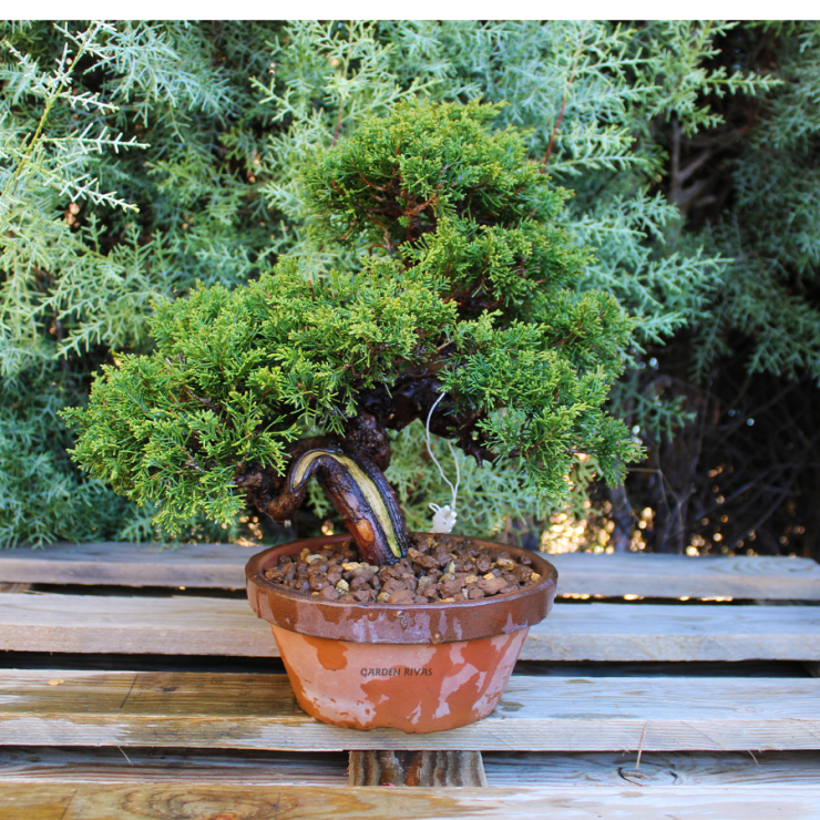 Este ejemplar es único, tiene una altura de 33 cm y el grosor de su nebari es de 4 cm. Incluye una maceta de terracota de entrenamiento de 19x9 cm (“diámetro x altura”).