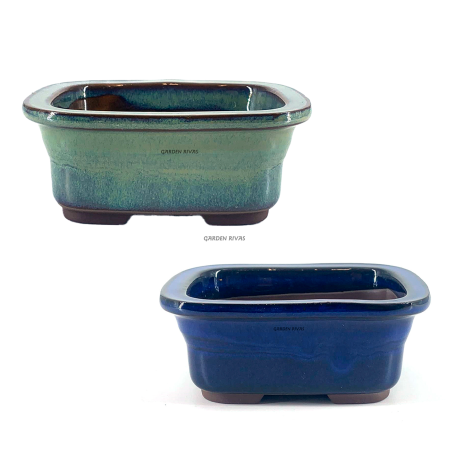 Macetas para bonsái. Cerámica. Rectangular. Verde turquesa o azul marino. 11,5x9,5x4,5cm. Fabricado en Japón.