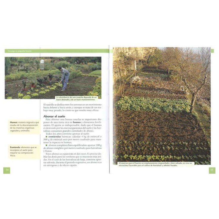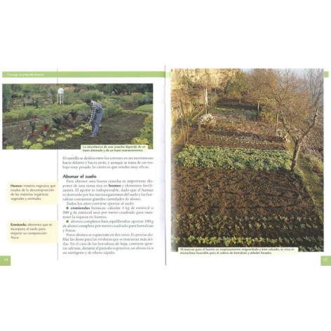 Todo lo que hay que saber para conseguir un pequeño huerto. Consejo sencillos para preparar el suelo, sembrar, plantar y recolectar. Incluye una ficha completa de más de 30 hortalizas y plantas aromáticas, indicando su descripción, veriedades y consejos específicos de cultivo.