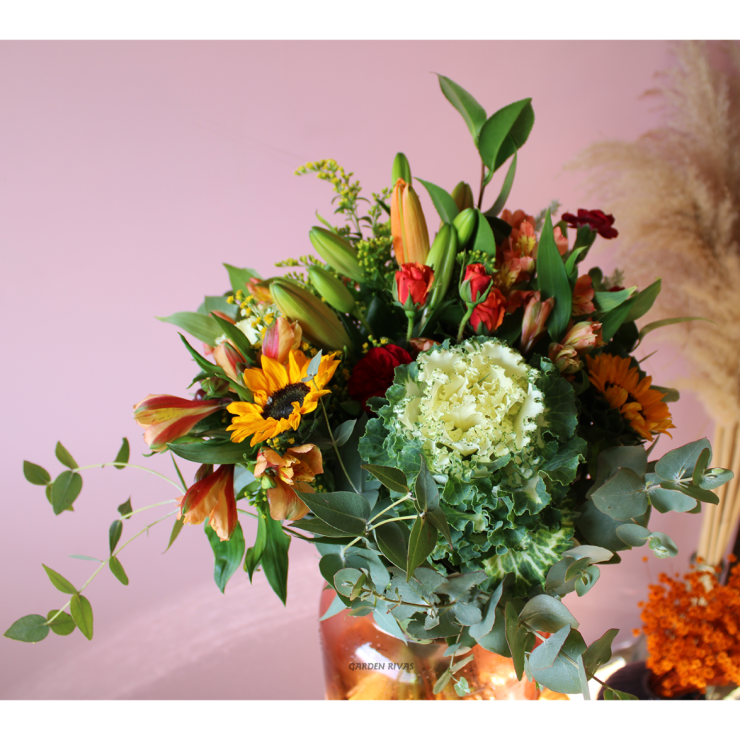 Tonos cálidos, cobrizos y diferentes formas y texturas hacen que este ramo ALE sea el perfecto acompañante para esos días de sol de otoño.